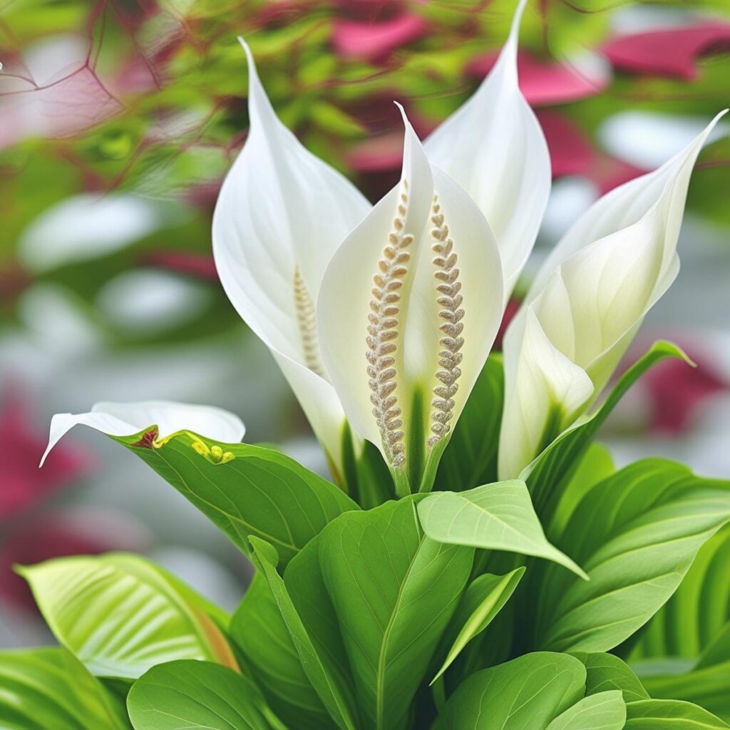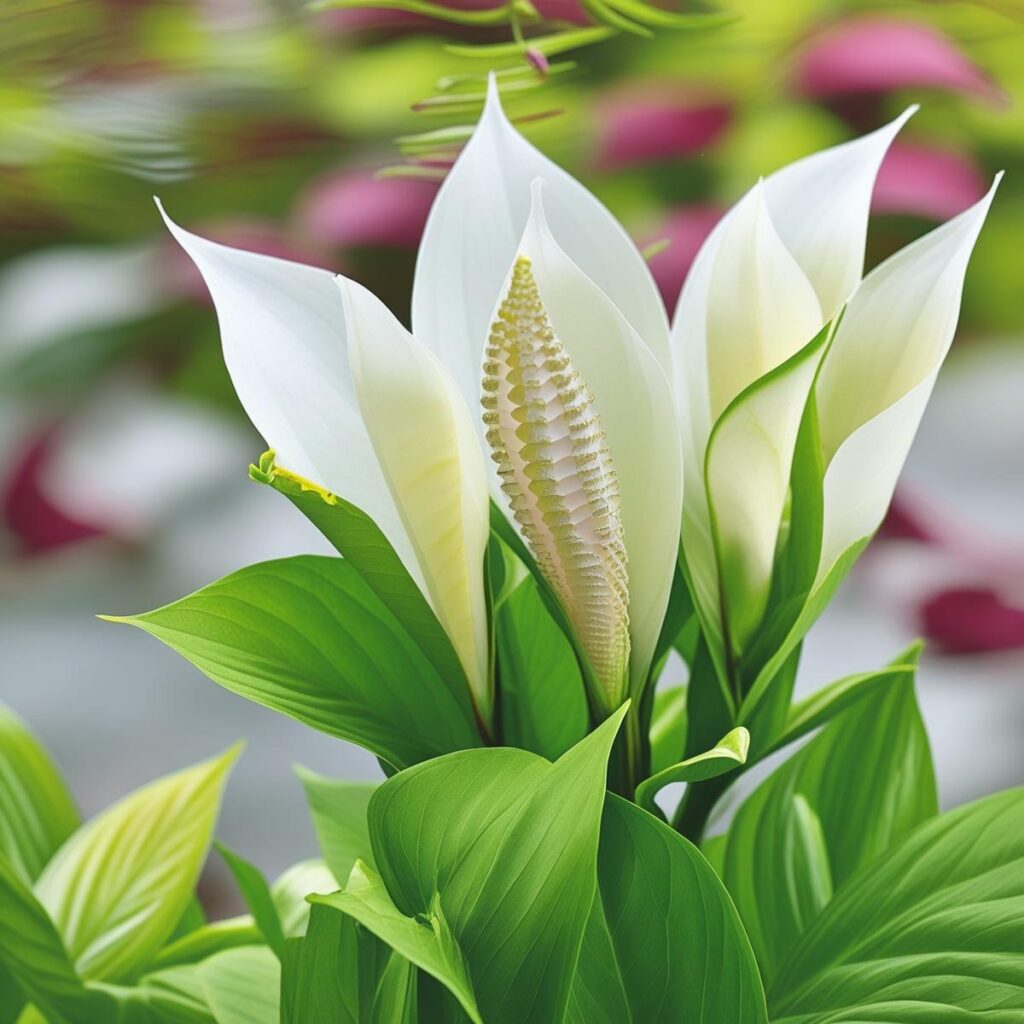 La cuna de Moisés pertenece al género Spathiphyllum. Es una planta tropical de interior, de hojas verdes brillantes y forma lanceolada, que destaca por sus inflorescencias: una espata blanca (la “vela”) que rodea un espádice central (la parte donde están las flores verdaderas).