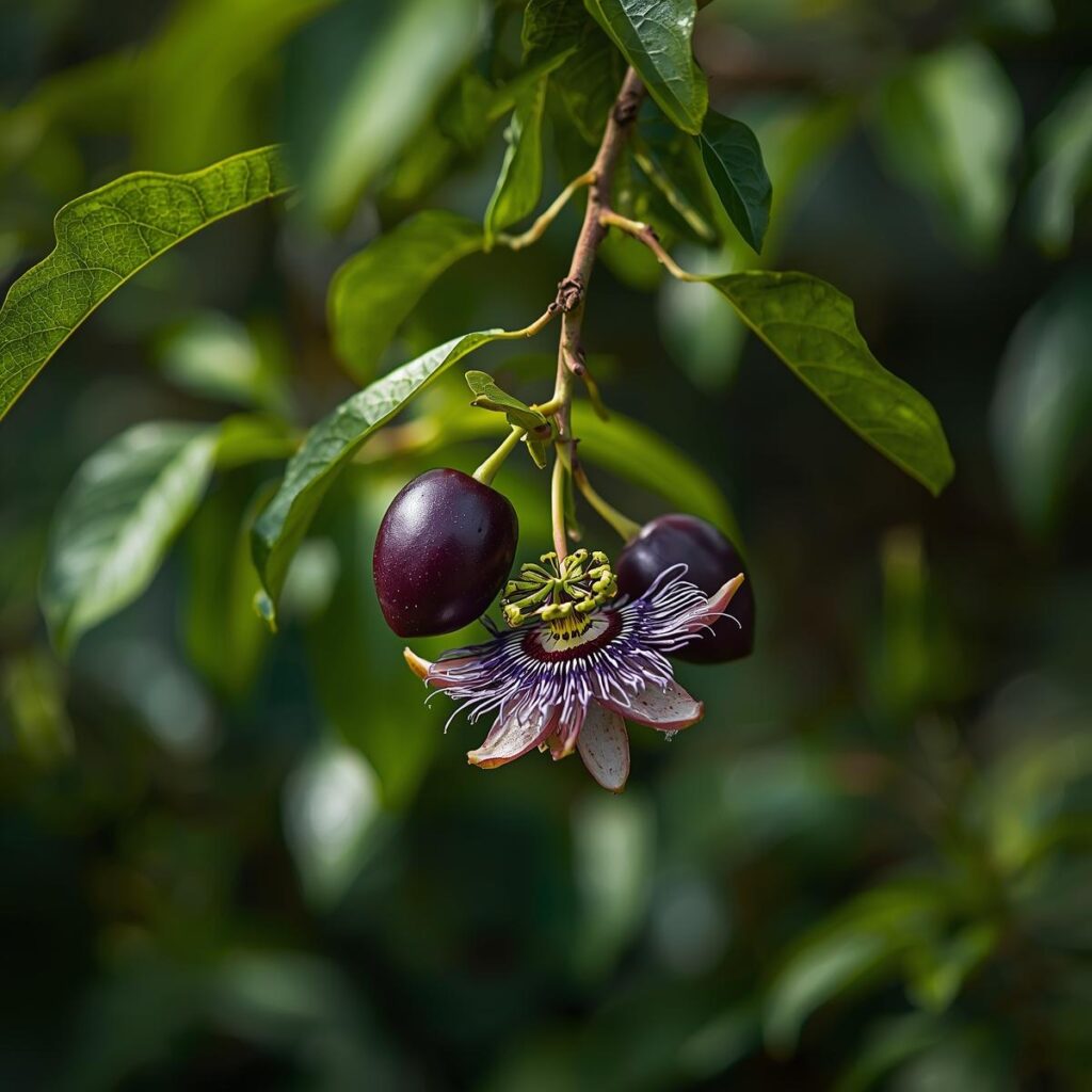 Cuando la planta está sana y la polinización funciona bien, aparecen los frutos. Dependiendo de la especie o variedad, estos pueden ser morados, púrpuras o amarillos, y al madurar desarrollan ese aroma intenso tan característico del maracuyá.
