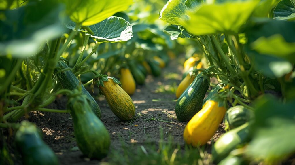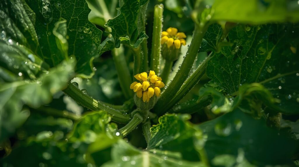 Una planta calabacín bien situada se nota enseguida: hojas fuertes, crecimiento constante y floración abundante.